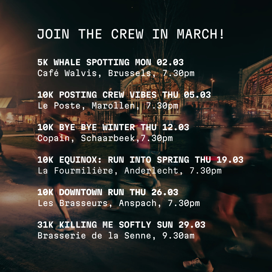 We share the love for running and the city of Brussels. We explore it. This city is great for running. Wij zijn een run crew, geen loopclub. Wij lopen om te verbinden, om een community uit te bouwen. Niet om ter snelst of ter verst, maar om samen te ontdekken, te babbelen of dikke fun te hebben.